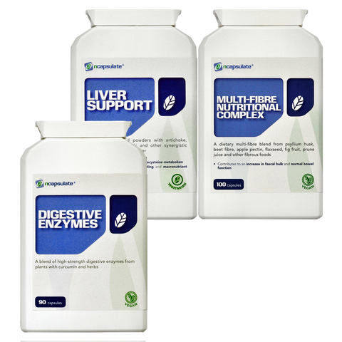 It comprises our best-selling ncapsulate® DIGESTIVE ENZYMES, ncapsulate® LIVER SUPPORT and ncapsulate® MULTI-FIBRE NUTRITIONAL COMPLEX dietary supplements.